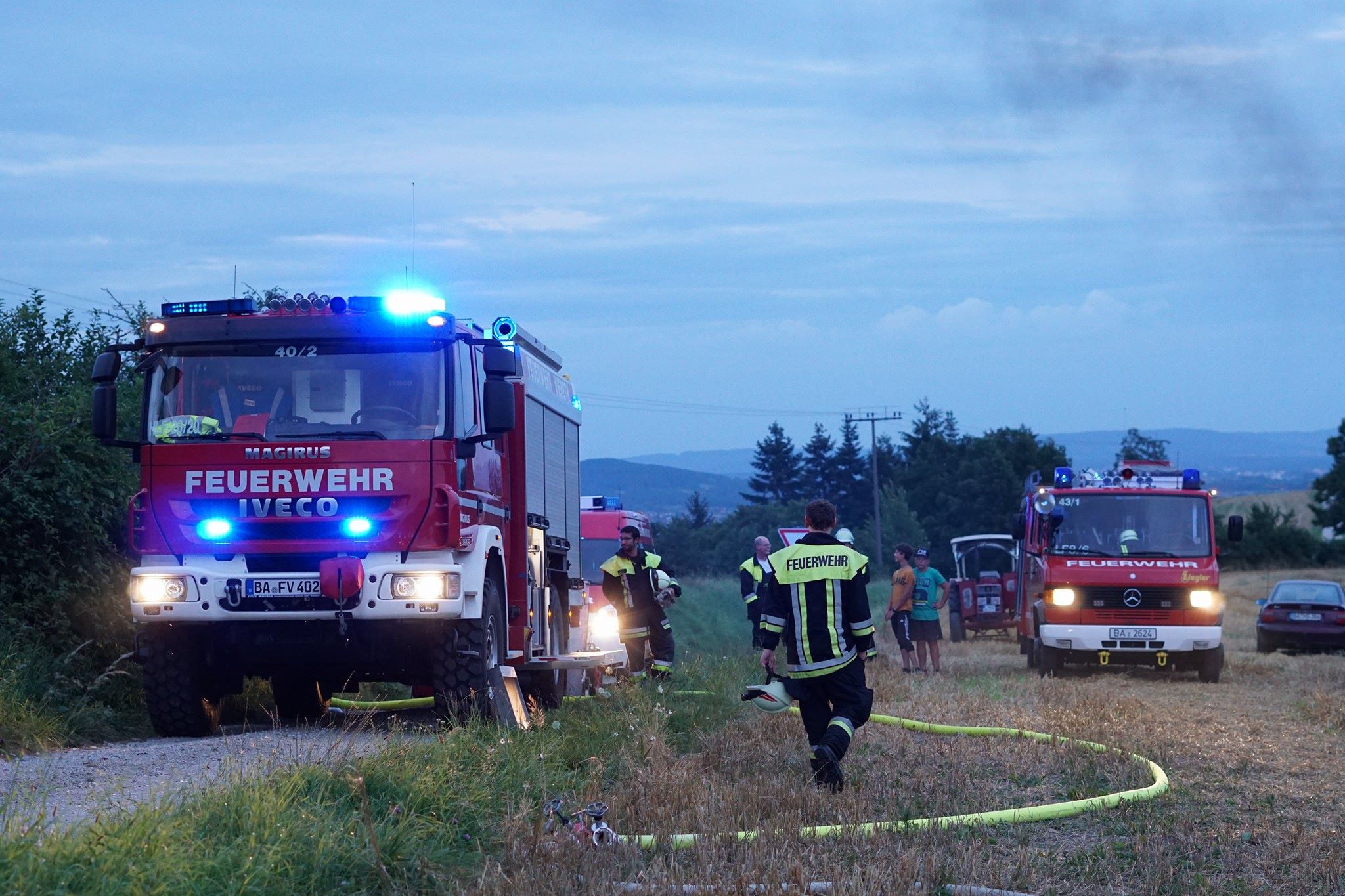 Am gestrigen Donnerstag wurden wir um 20:03 Uhr zusammen mit der Feuerwehr Viereth zu einem Brand einer Rundballenpresse zwischen Trunstadt und Stückbrunn alamiert. Bei eintreffen am Einsatzort stand die Presse schon im Vollbrand. Die Presse wurde mit Hilfe von Schnellangriff und Löschschaum abgelöscht.