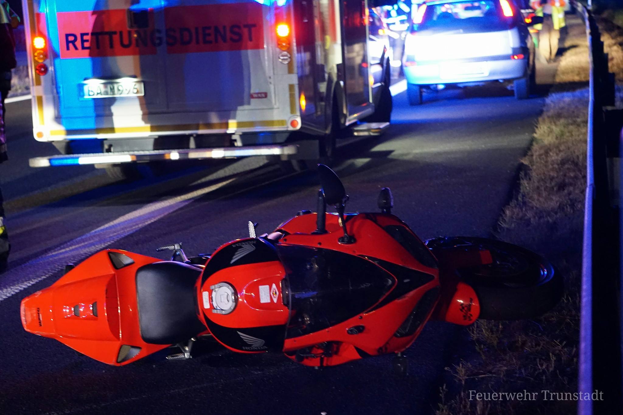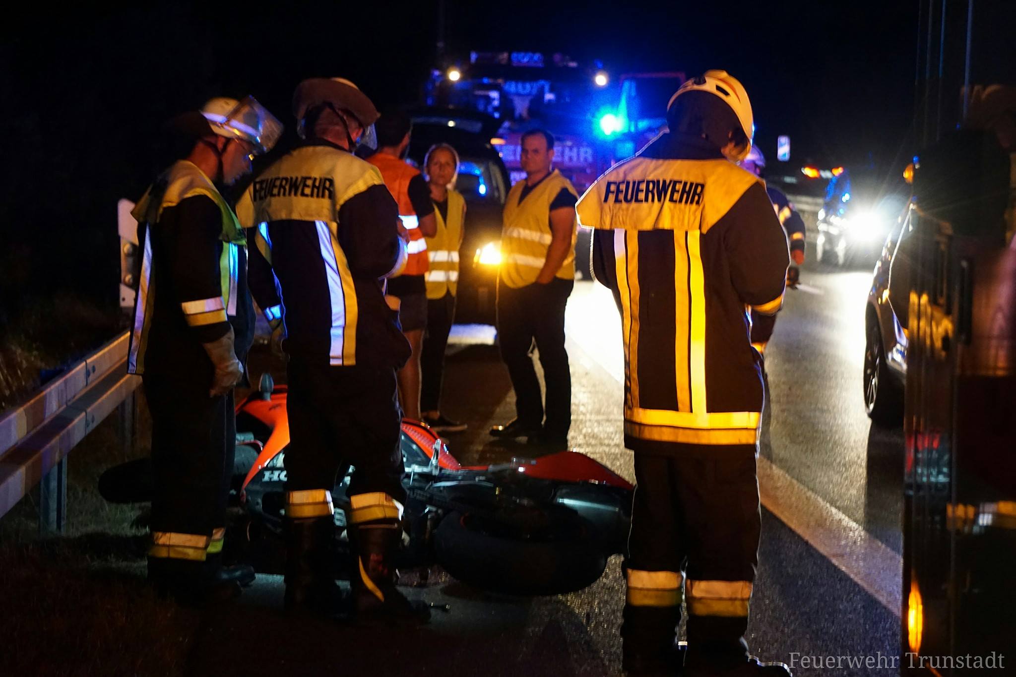 Am gestrigen Samstagabend gegen 20:30 Uhr wurden wir zusammen mit der Feuerwehr Viereth zu einem Verkehrsunfall mit einem Motorrad auf die A70 zwischen Viereth-Trunstadt und Eltmann in Fahrtrichtung Eltmann alarmiert. Bei eintreffen am Einsatzort wurde der verletzte Motorradfahrer bereits vom Rettungsdienst versorgt. Wir sicherten die Unfallstelle des rechten Fahrbahnstreifens bis zum eintreffen des Abschleppdienstes ab. Nach einer Stunde konnten wir wieder abrücken.