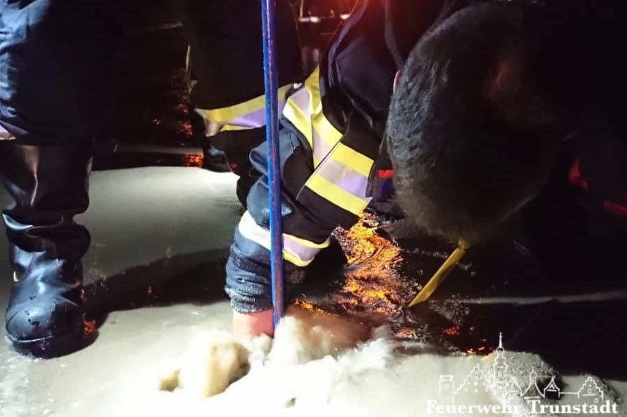 In der Nacht von Freitag auf Samstag wurden wir zu einer Überschwemmten Fahrbahn in Trunstadt alarmiert.