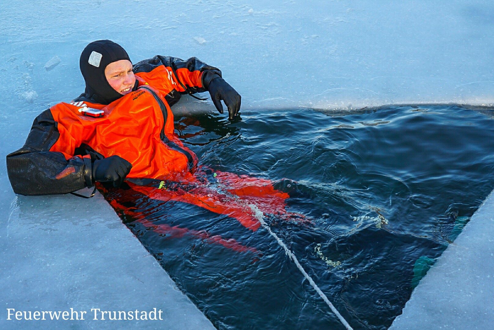 Hier mal ein paar Bilder der zweiten Eisrettungsübung. Diesmal wollte unsere Jugend die Rettung eine im Eis eingebrochene Person Üben. Die Eisdecke mit ca 20cm ist enorm und hat es so schon lange nicht mehr gegeben.