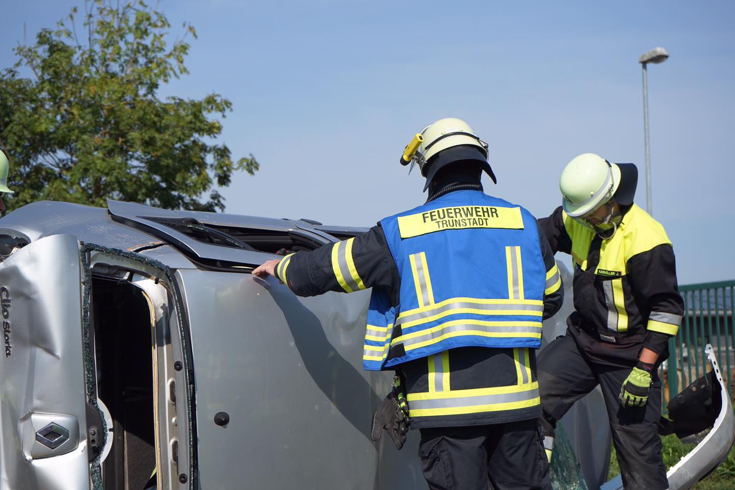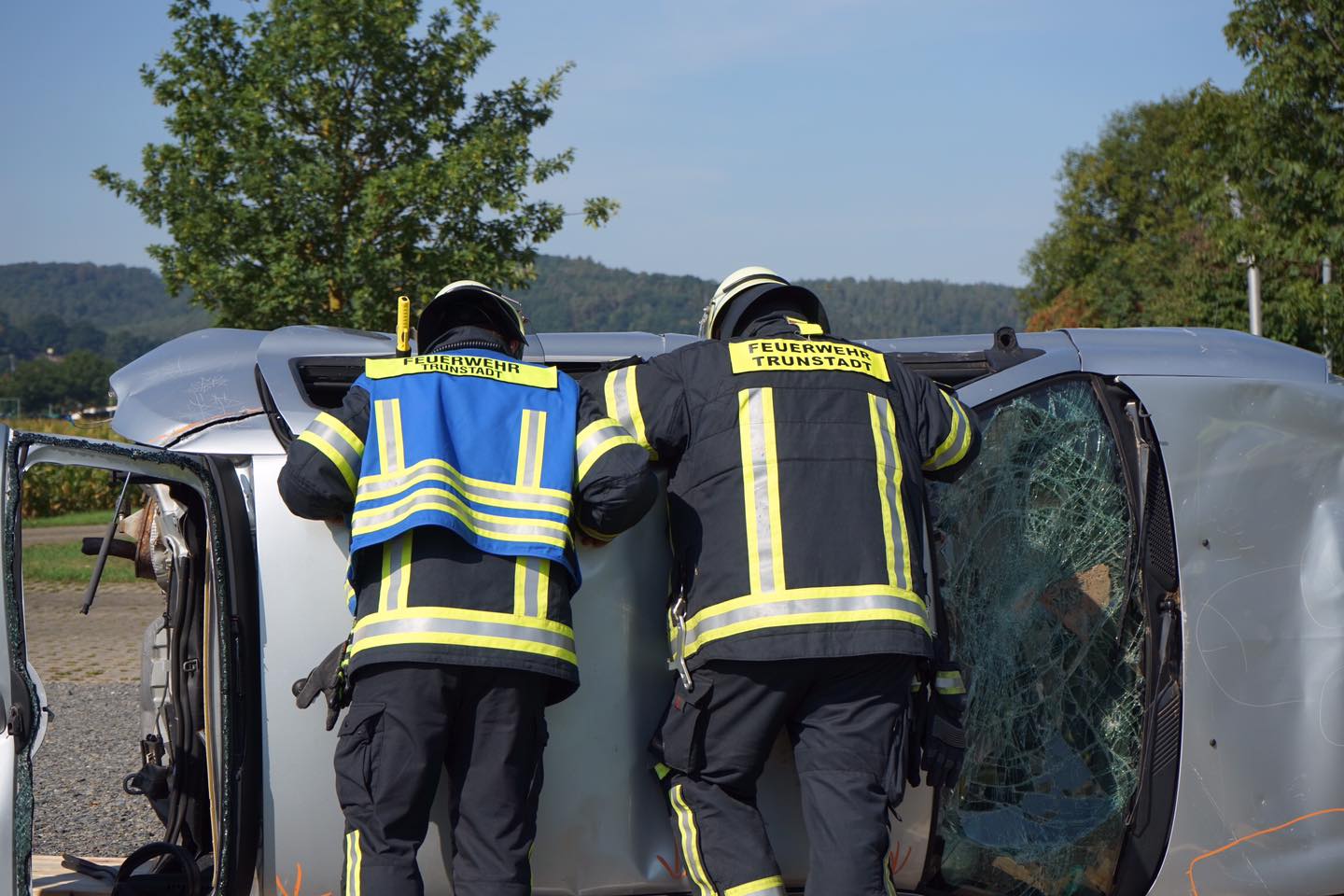 Die Übungen bestanden aus einem simulierten Brandeinsatz sowie einem VU ( Verkehrsunfall ).