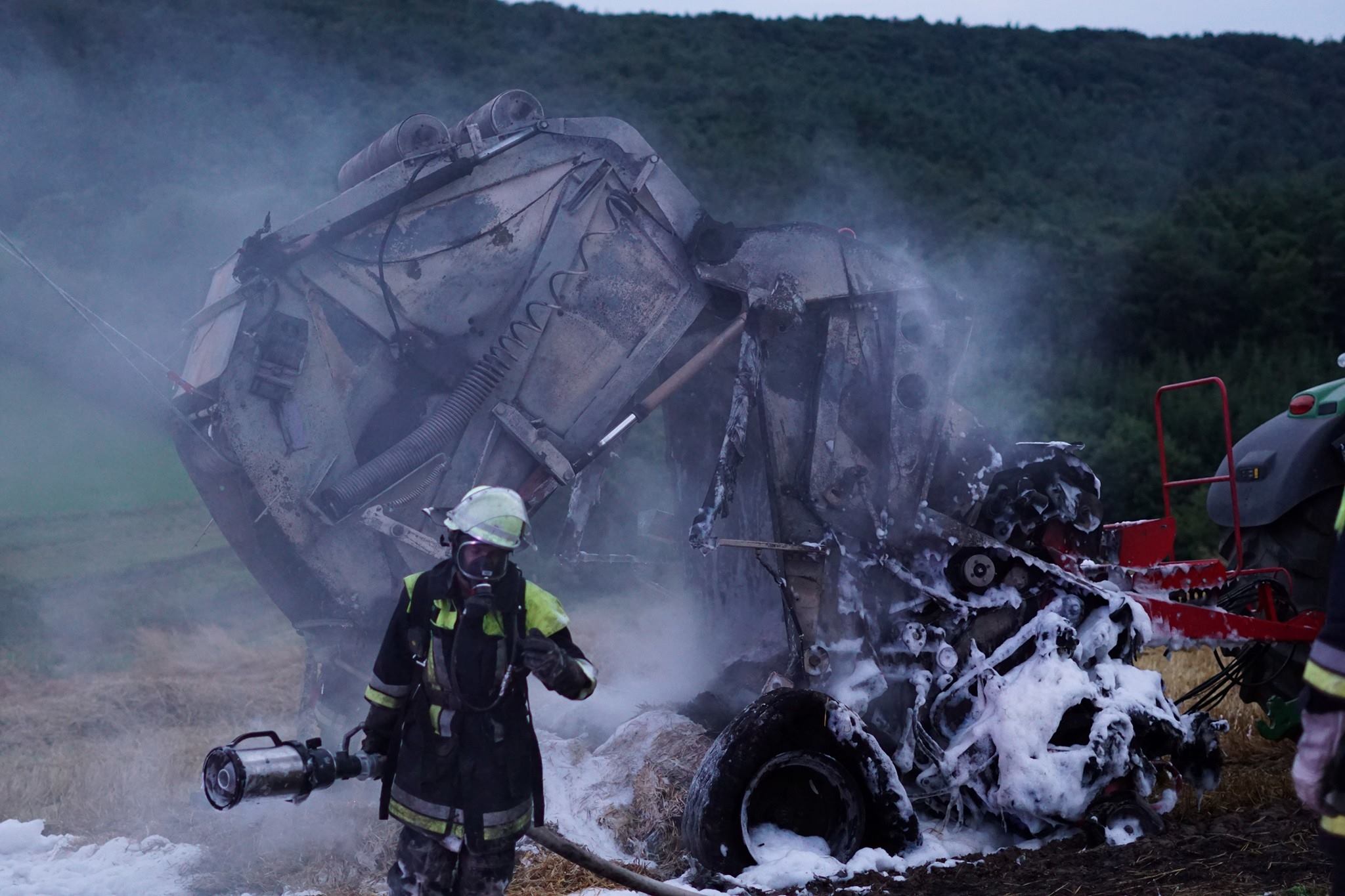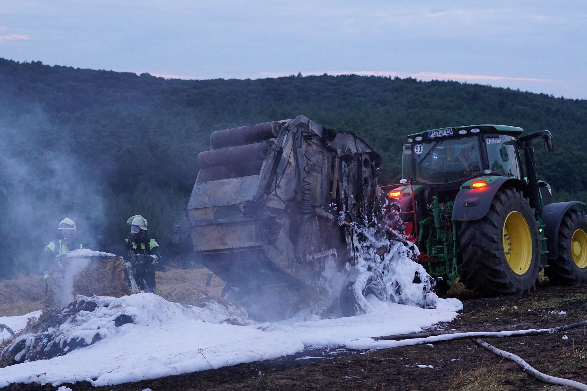 Am gestrigen Donnerstag wurden wir um 20:03 Uhr zusammen mit der Feuerwehr Viereth zu einem Brand einer Rundballenpresse zwischen Trunstadt und Stückbrunn alamiert. Bei eintreffen am Einsatzort stand die Presse schon im Vollbrand. Die Presse wurde mit Hilfe von Schnellangriff und Löschschaum abgelöscht.