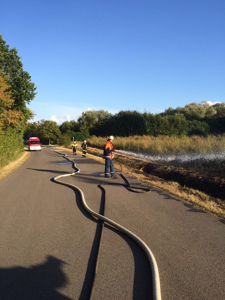 Heute wurden wir von der Leitstelle zum Ortsausgang von Trunstadt in Richtung Roßstadt zu einem Brand alarmiert. Bei eintreffen am Einsatzort stand der Graben auf einer fläche von 20×4 meter in Brand. Wir löschten ihn mittels S-Schlauch und einer weiternen Schlauchleitung. Nach einer dreiviertel Stunde war dieser Einsatz abgearbeitet und wir konnten wieder zurück zu unserem Feuerwehrhaus und uns wieder Einsatzbereit melden. Insgesamt waren 15 Kameraden unserer Wehr im Einsatz.