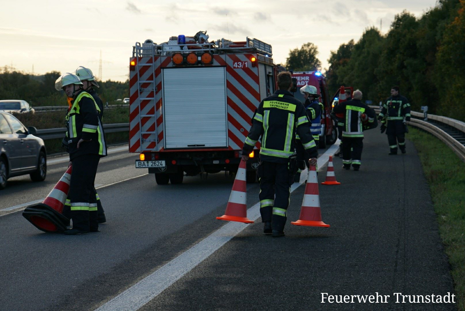Am heutigen Feiertag dem Tag der Deutschen Einheit wurden wir zusammen mit der Feuerwehr Viereth zu einem Verkehrsunfall auf die Autobahn A70 kurz vor der Ausfahrt Eltmann Alarmiert. Dort war es zu einem Zusammenstoß zwischen einen PKW und Wohnmobil während eines Überholvorgangs gekommen. Wir sicherten zusammen mit der Feuerwehr Viereth die Unfallstelle ab und sperrten den rechten Fahrstreifen sowie den Standstreifen. Glücklicherweise gab es nur eine Leichtverletzte Person.