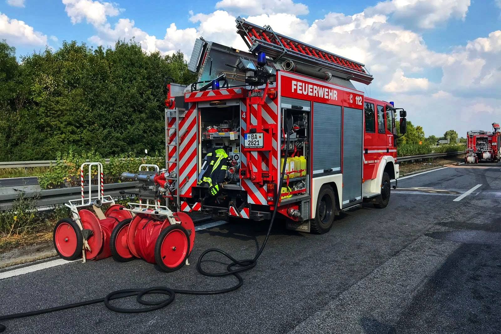 Heute Nachmittag wurden wir zusammen mit der Feuerwehr Oberhaid, Feuerwehr Unterhaid sowie der Führung auf die Autobahn A70 kurz nach der Anschlussstelle in Fahrtrichtung Bamberg zu einem Verkehrsunfall zwischen zwei PKW’s und einem LKW alarmiert. Bei eintreffen am Einsatzort bot sich ein großes Trümmerfeld. Bei dem Unfall wurde der Tank des LKW’s aufgerissen sodass eine große Menge Betriebsstoffe ausliefen. Einer der PKW’s lag völlig zerstört auf der linken Fahrbahn. Wir stellten den Brandschutz sicher und reinigten die Straße von den Trümmerteilen. Nach dem Abtransport der beiden PKW’s sicherten wir zusammen mit der Feuerwehr Oberhaid den Abschlepper mit dem defekten LKW bis in den Bamberger Hafen zwecks Brandschutz ab. Um ca 19:30 Uhr waren wir wieder zurück am Standort und meldeten uns wieder Einsatzbereit.