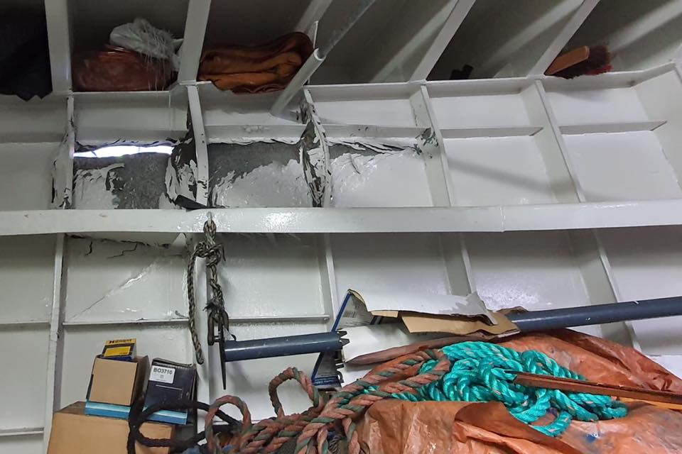 Beim einfahren in die Schleuse ist ein Binnenschiff das mit Raps beladen war mit dem Schleusentor kollidiert und hat Leck geschlagen. Durch den Aufprall wurde die Bugseite so stark bestätigt das Wasser eintrat.