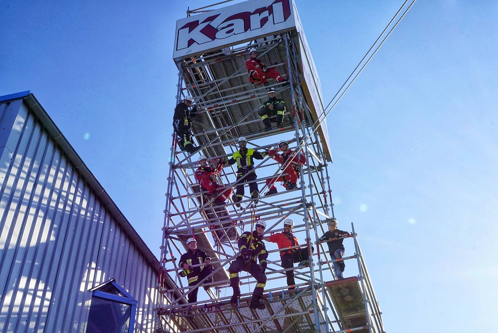 Damit unsere Ausgebildeten Kameraden in Form bleiben und für eventuelle Einsätze einsatzbereit sind waren wir heute zu Gast bei der Firma Karl Gerüstbau und Schalungstechnik GmbH um dort an seinem Gerüstturm verschiede Einsatzszenarien zu üben. Unseren Kameraden hat es viel Spaß gemacht. Der Gerüstturm mit der Plattform in der Mitte war perfekt für die Übung. Hier nochmal ein großes Dankeschön für die Möglichkeit.