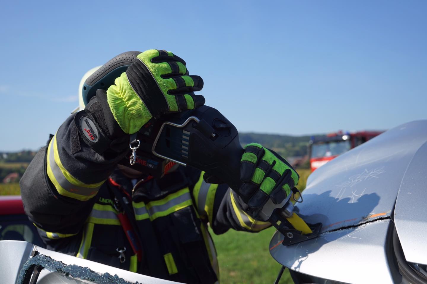 Die Übungen bestanden aus einem simulierten Brandeinsatz sowie einem VU ( Verkehrsunfall ).